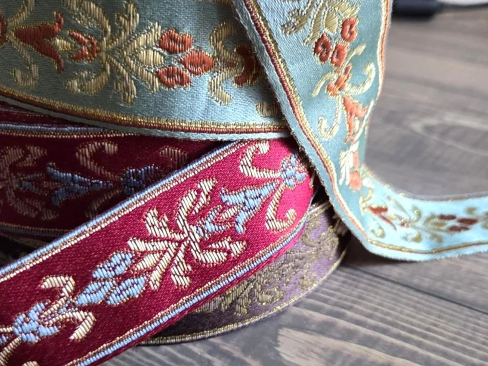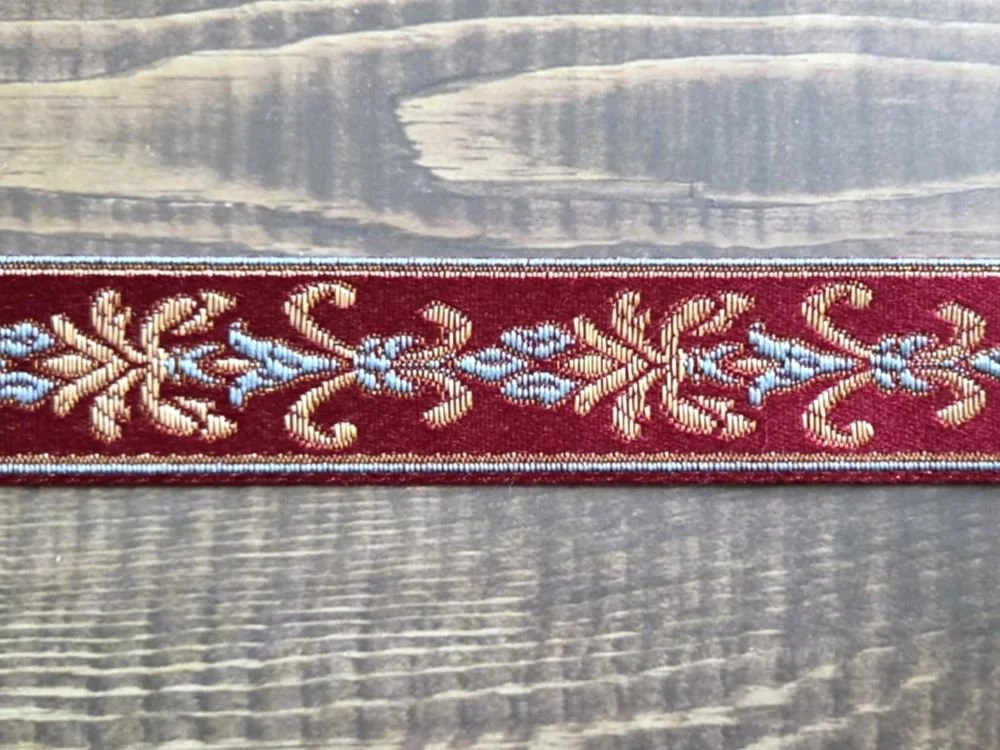 A fantastic choice for any medieval inspired costume! This strong jacquard webbing is 30mm wide and sold by the metre.